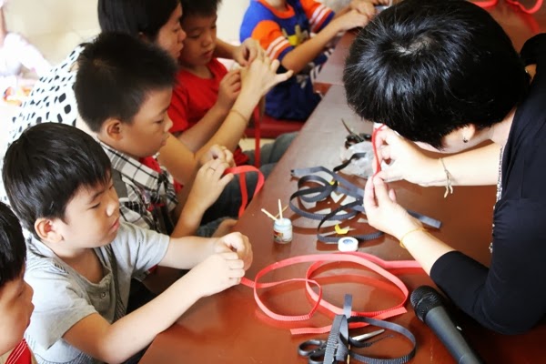 Begini polah lucu peserta yg kreatif. Hmm..,sambungan kertas kokoru bisa juga loh dipake sebagai ikat kepala. Haha |