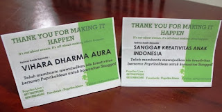 Mc. J (PaprikaIdeas) menyerahkan donasi kepada Vihara Dharma Aura yg diterima oleh Hela dan memberikan Thank you card kepada Sanggar Kreativitas Anak Indonesia yg diterima oleh Ms.Lily |