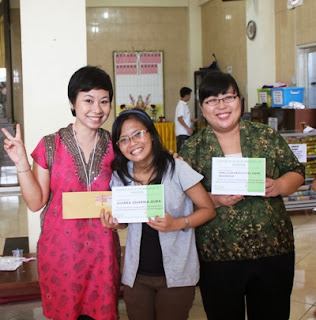 Ms. Hela dan Ms. Lily tampak serius berdiskusi menentukan karya siapa yg terbaik |